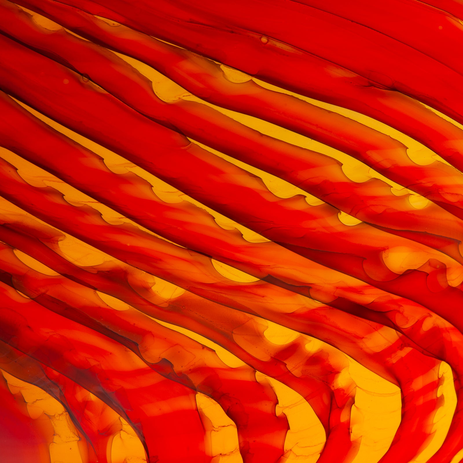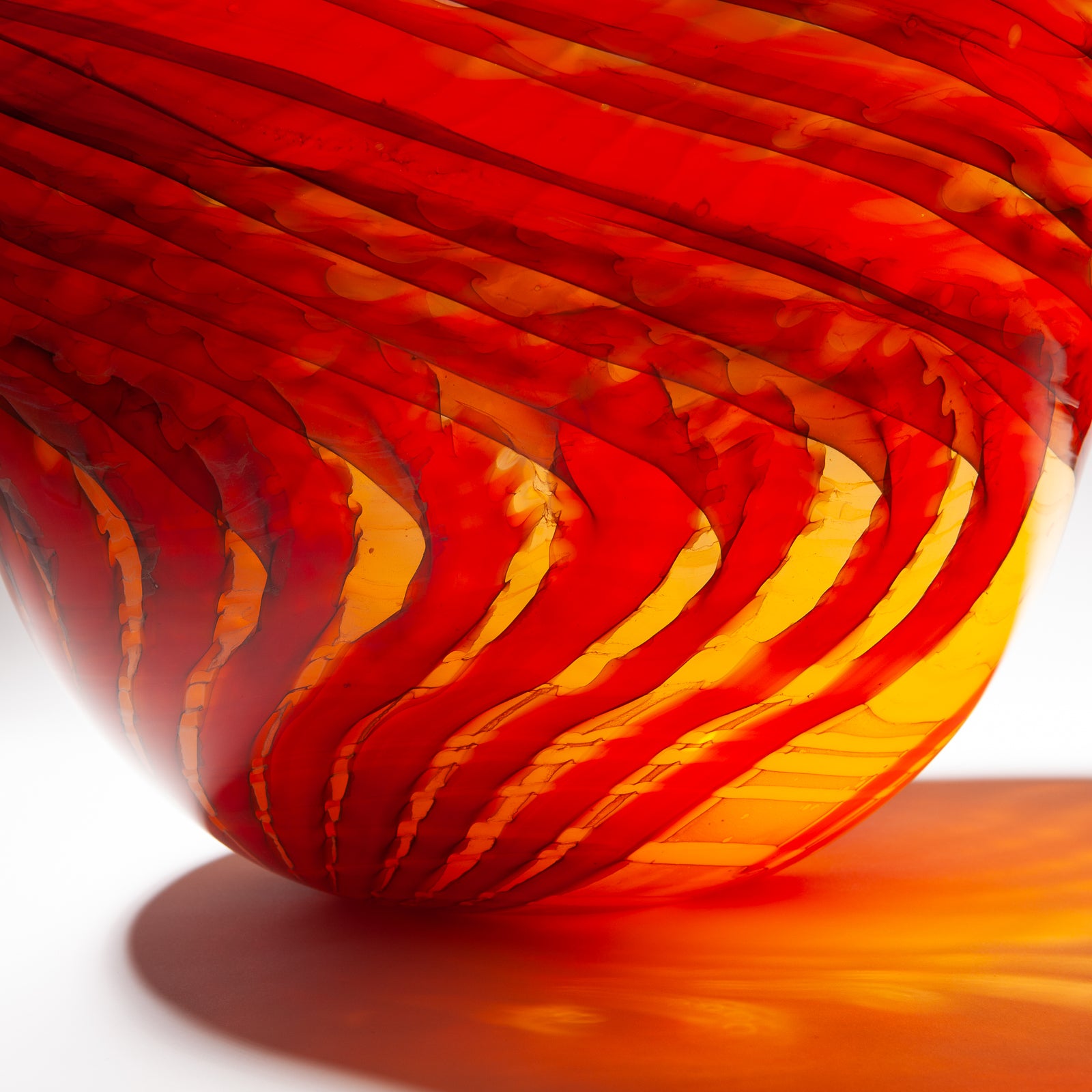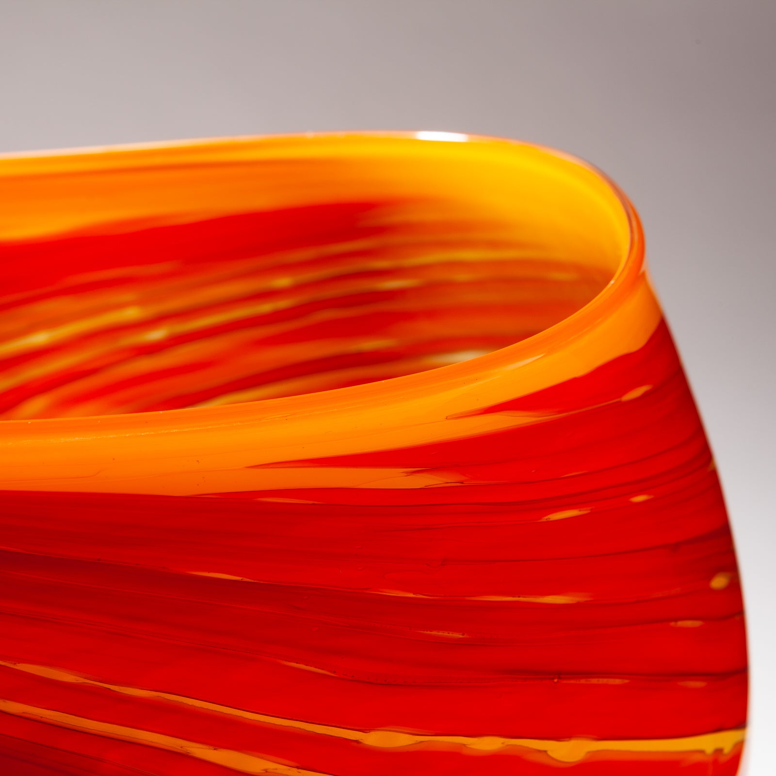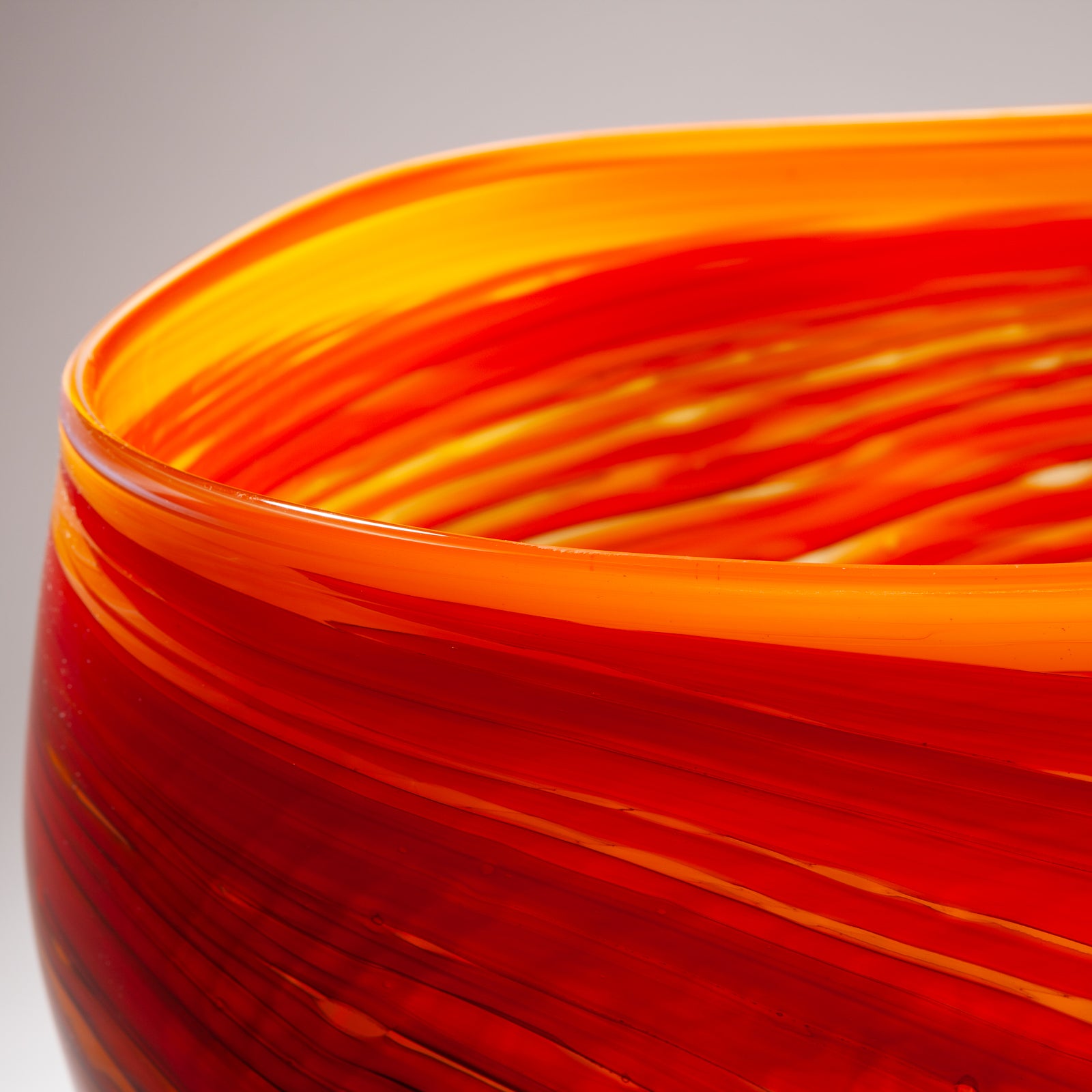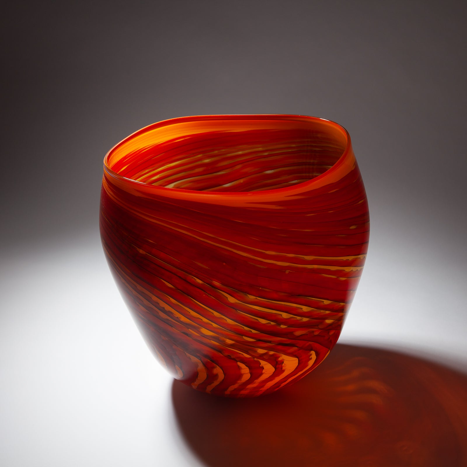 Impressive large orange blown glass vessel with swirl pattern.