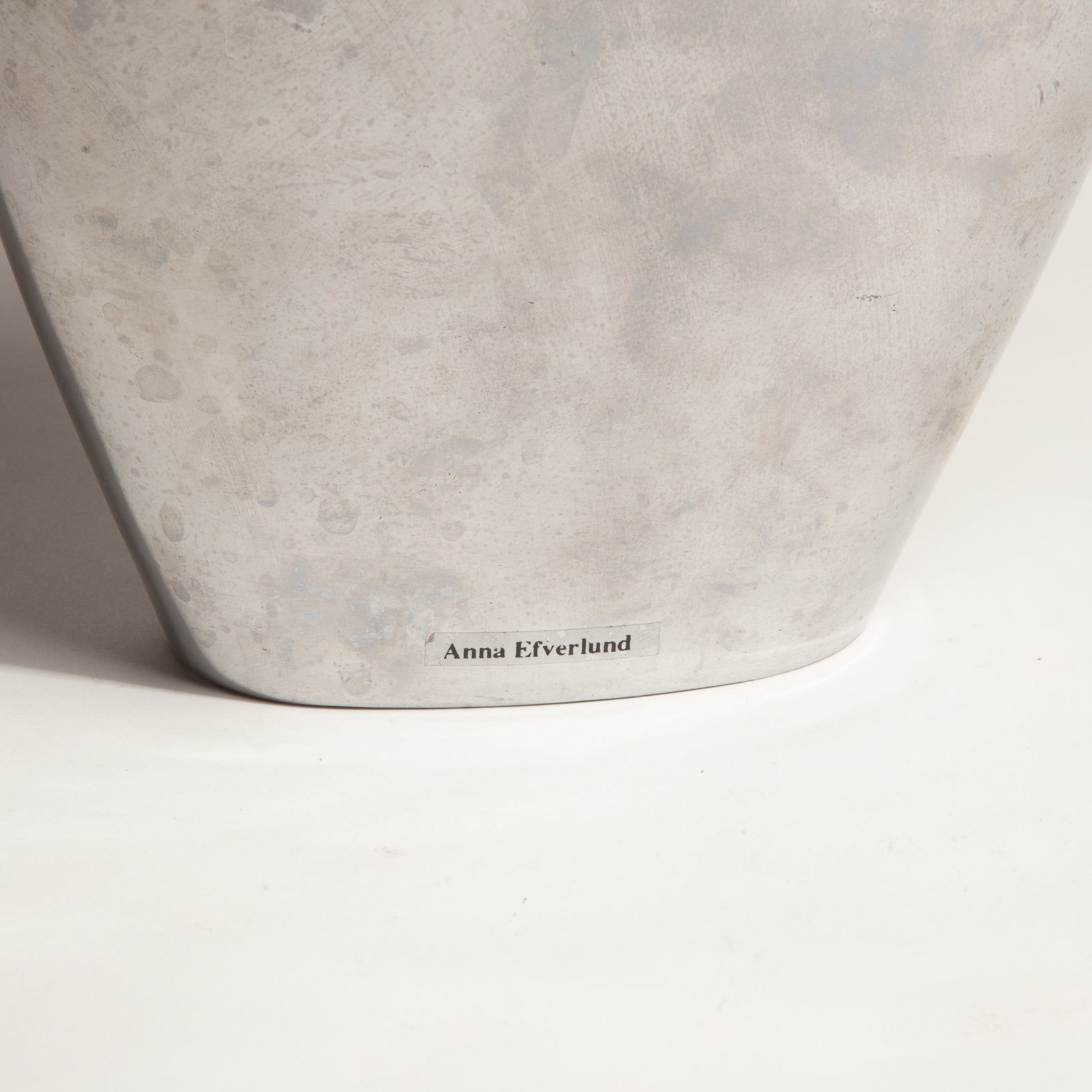 Pair of sculptural cast aluminum vases, one polished and one brushed.
