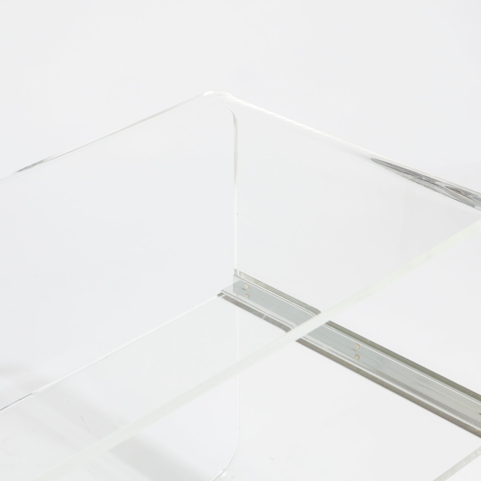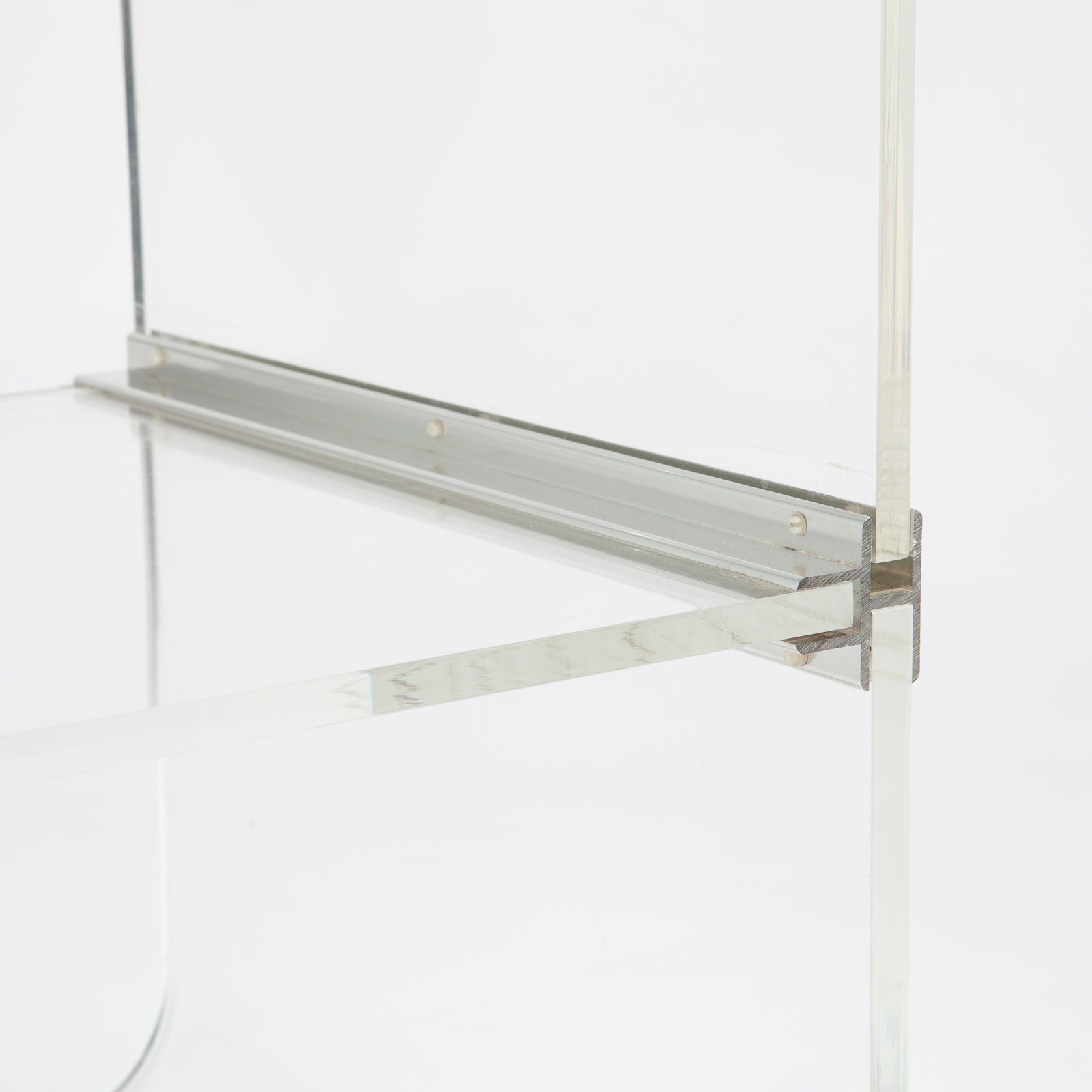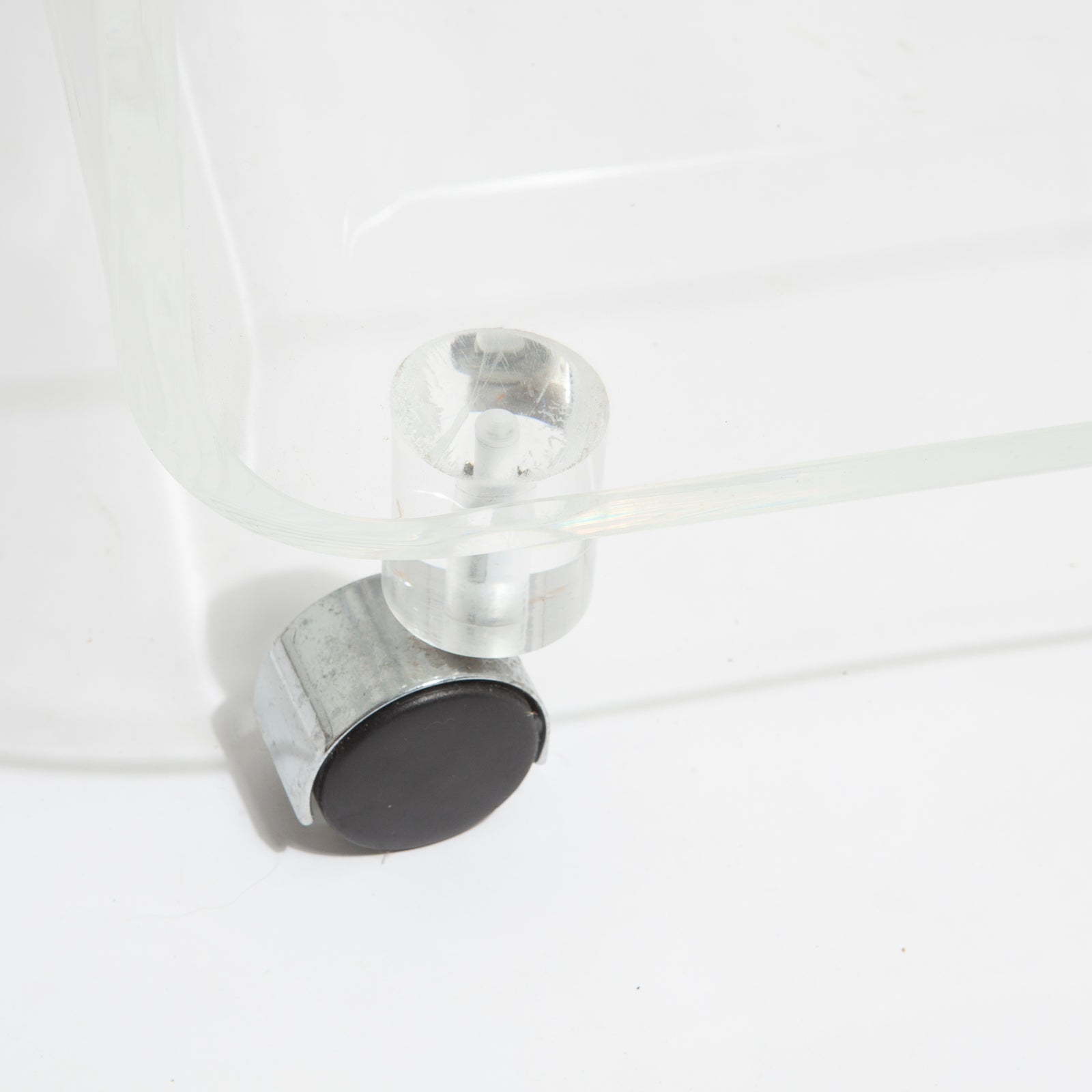 Fantastic post modern lucite rolling trolley. Would make a great bookcase, bar cart, side table, nightstand, or media unit.
