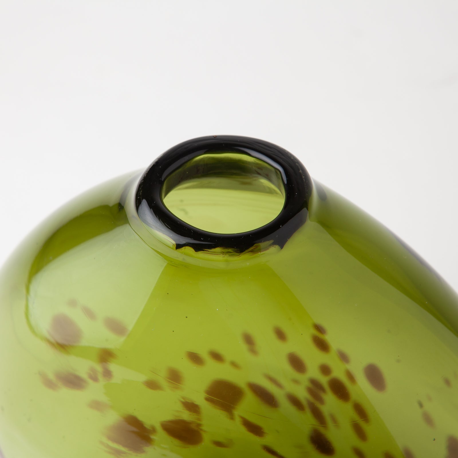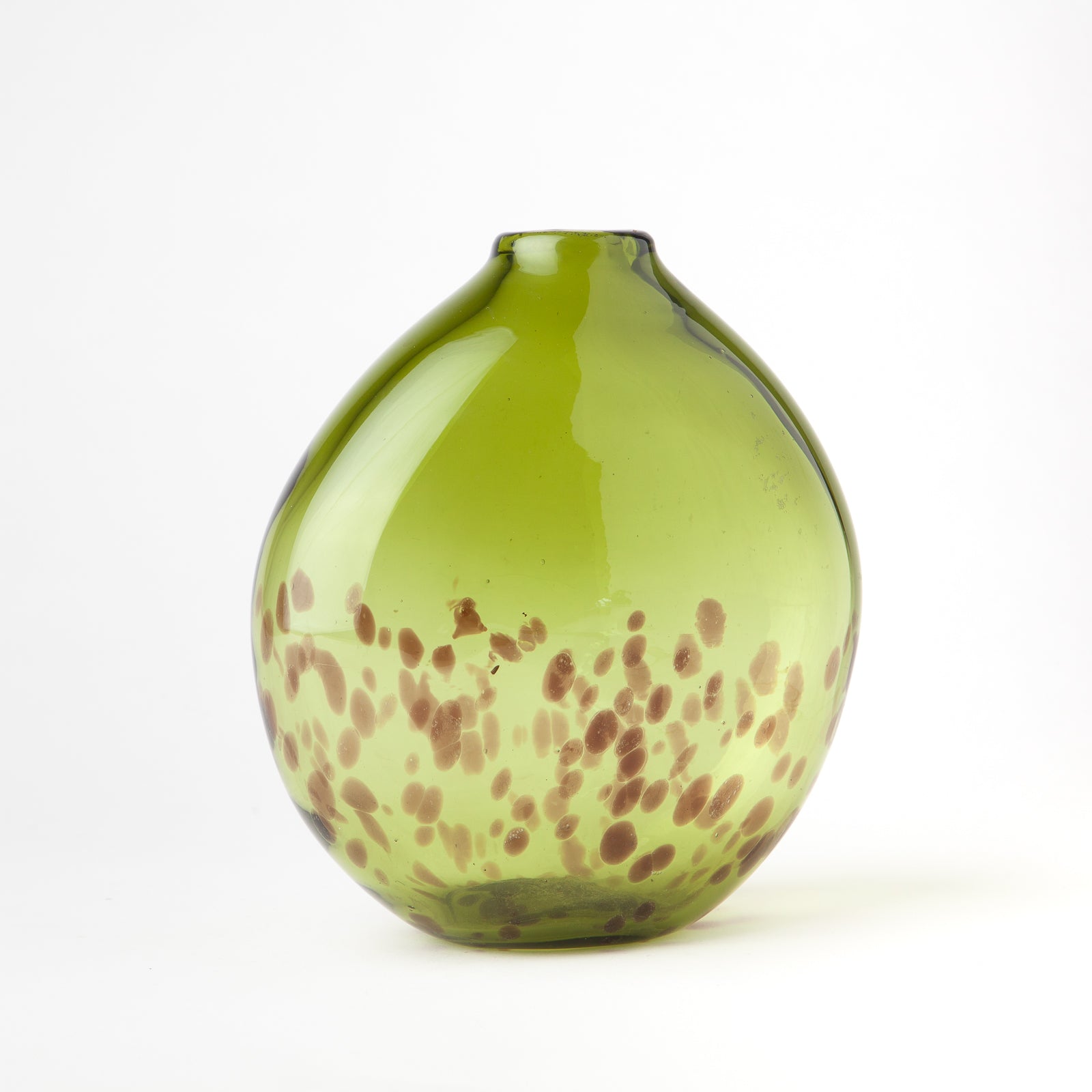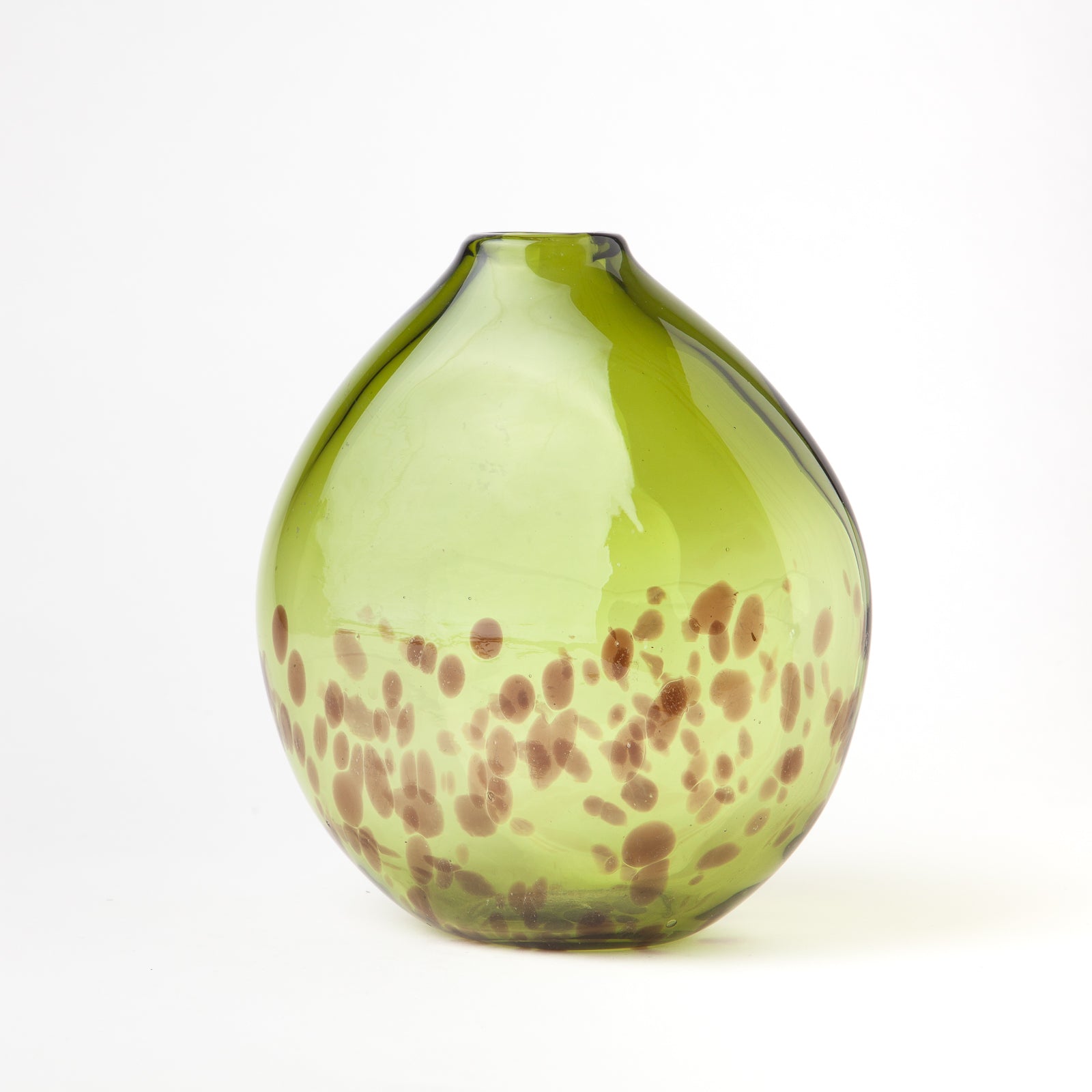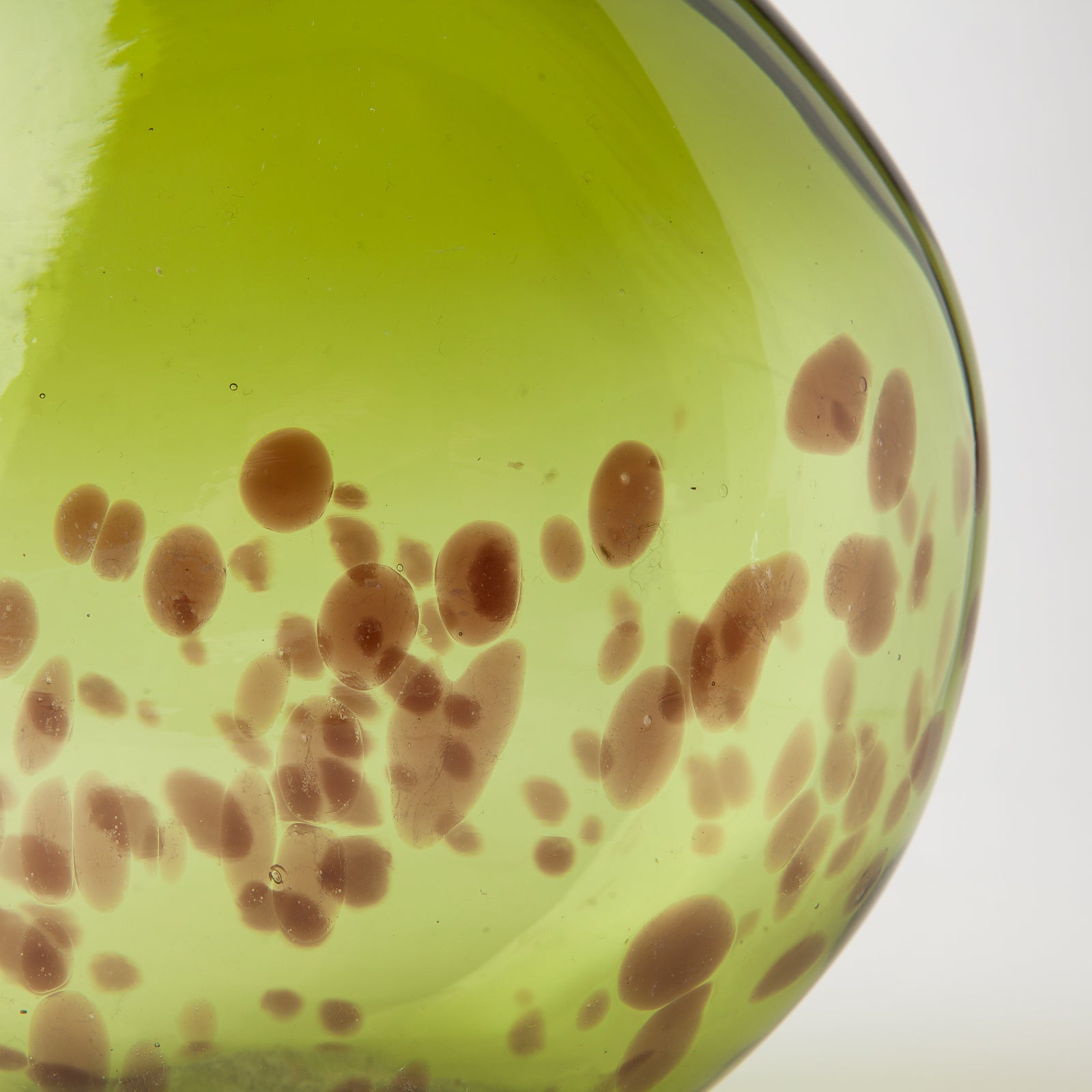 Vibrant green vase with brown tortoise shell pattern.